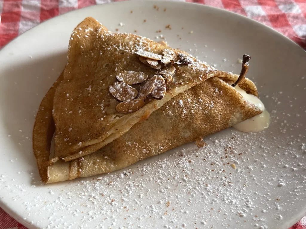 A galette is a savoury crêpe; it is made of buckwheat flour, so it is gluten-friendly (traces of gluten may remain).